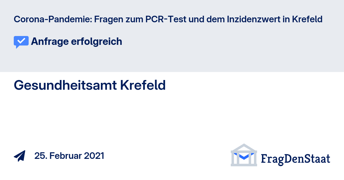 Corona Pandemie Fragen Zum Pcr Test Und Dem Inzidenzwert In Krefeld Fragdenstaat